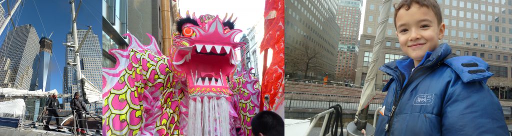 Tara docked in Battery Park City near the site of the new tower which is still under construction–rising like a Phoenix from the dust–pain and ashes filling the sky with new hope.