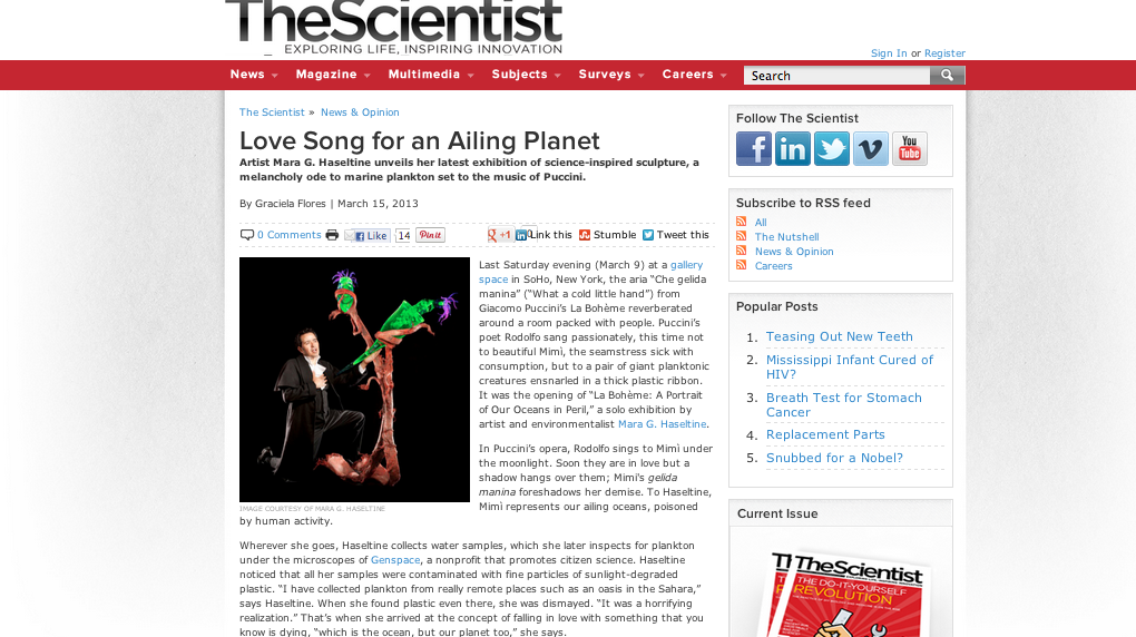 Recent interview with The Scientist after Haseltine’s first solo show in NYC at the agnès b gallery in SoHo. Congratulations Mara!