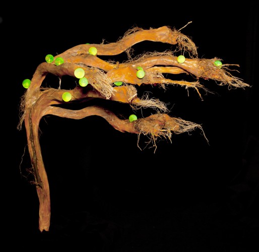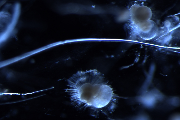 To create this body of work, the artist collected plankton samples from waters around the globe. The first samples were collected February-March 2011 off the coast of Chile aboard the schooner Tara Oceans. The contents of these samples revealed an alarming truth; not only did the samples contain the delicate otherworldly forms of plankton, but also shreds of sunlight-degraded plastic. This discovery inspired a series of sculptures that resemble surreal beings from an alternate universe, but are in fact depictions of oceanic plankton entwined with plastic. The conclusion is a new awareness–that our fate is intimately linked with that of our oceans.