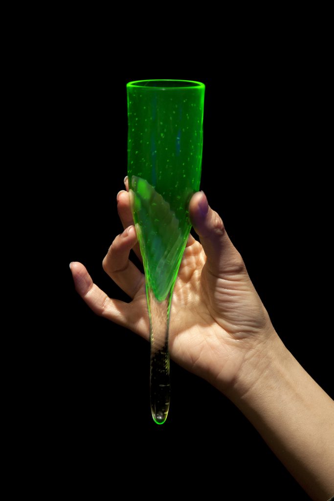 3) These glowing Tintinnid Champagne Glasses (2012) were inspired by the tintinnid plankton Haseltine observed while examining water samples from oceans around the world under a microscope. They are light-hearted pieces as the artist, enchanted by their fluted forms, likens them to champagne glasses for mermaids.