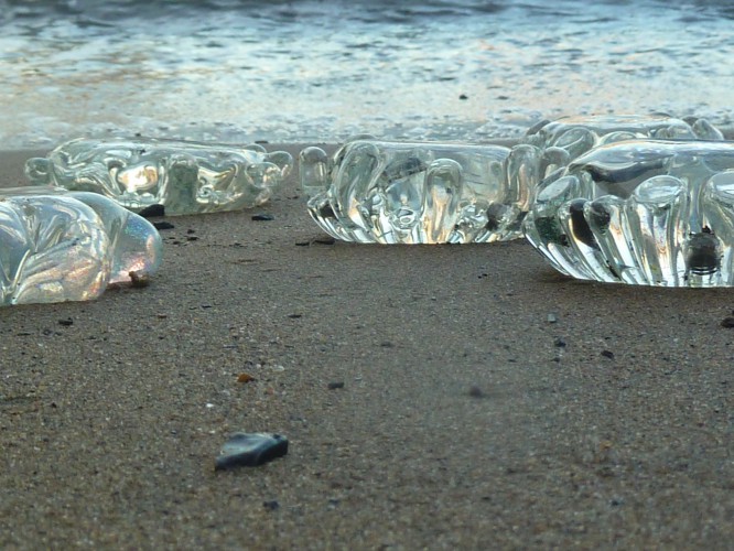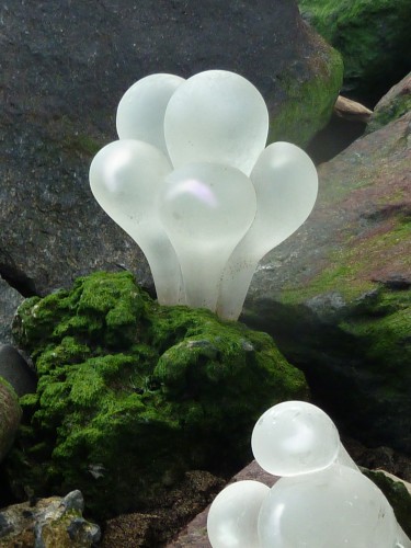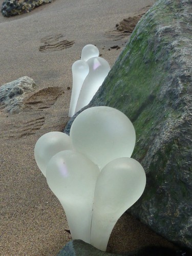 This work of hand-blown glass is meant to be installed in a natural environment where the viewer stumbles upon it unexpectedly. Their organic shapes mimic something found in nature but their presence and scale in nature look surreal.